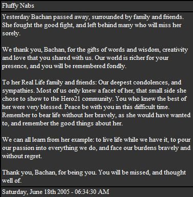 and I don't yet feel like I can give my own touch to it. Inusoup Thirteen souplets may be as far as it'll go because of all the effort going into it. I don't know if I can describe/go into it as well as my younger self; but the Gallery's QuickPix and Scrolls may share some resemblance- my latest project on the episodes. ^^ Gallery It's been edited as much as possible. I haven't figured out how to neatly box the album in and don't particularly want to. Well, the top navigation easily fits in a frame, so that's just how it'll be. ^_^; Some albums feature a Slideshow, which I had to modify a bit to work decently. If I hadn't gone to the gallery's code, it would resemble this layout. So, I did all I could.^^; Anitate It may seem to be cut off at the bottom, but for better or worse, it works best that way for browser-ness. Some may have settings like 'resize image'; so each image is loaded from a different page into that frame to make sure they're at the right size ^^ Here's an example from IE's Browsing Options->Advanced tab: By default, that one is checked; usually scaling down images. I'm just playing it safe ^^; Imvs In Mozilla browsers, it's best viewed because it's streamed. IE loads it completely first, and then plays. These 20 swf videos average to 7642.75 k; and, based on a 56-k connection proxy, IE takes 30 seconds to load. Mozilla browsers stream at least 8 seconds before continuing play, but after it's loaded one can play it right through ^^. Perhaps after one turns down the volume, browses elsewhere, or eats a cookie and then reloads the vid, it may play a lot more smoothly in slower connections. Once having been a 56-k for five years, I understand that one gets used to slow-loading pages else looks for proxies that speed up the connection. I don't mention the file size nor my favorites because it would crowd; and perhaps deter would-be viewers. They all happen to be my top favorites and that's why I took the time to share them ^^ If you wonder why I haven't any InuYasha music.. well, maybe one day. I like being decorative and have streamed with RadioBlog before. I kinda want to create my own player, though. ^^; There are several flash player tutorials and ready-to-download ones...However, the Gallery is the site's main focus. Link Out I do briefly mention myself having archived Hero21; which is true because it was so awesome and I wanted a copy should the site go down. Ba-chan, the writer/artist, passed away 17 June 2005 and some images that were down from the site for repairs didn't return. It was then that I copied the site's comic and fixed the broken images with ones I'd saved years earlier. In the end, it's still just a personal copy and someday I hope to ask permission to host it. The guestbook at the current site is regulary spammed with things like 'FOR ARE SAKES LEARN TO DRAW OMG THAT' and that just depresses me. Affiliates Well... To go back a bit, it was my website's dream to affiliate with Lush, Hero21, and InuYasha Script; but felt my site has to be to their beautiful standards which I still aim for so never did ask^^; In the mean time, I got accepted into webrings and proposed an 'Affiliates' page to mention them, and was also asked to link-exchange. Some sites shut down early. What makes me crazy, I suppose, is my wish for an affiliates page with InuYasha sites done by people at least 15 years of age. Their sites would be at least a year old [shows dedication] and the age thing makes them feel like family ^^; Oh, I do dream of the little things. I like to scout around and see if there such InuYasha sites... I link out to ShatterFlii Productions because Erika is a goregous artist and I don't mind helping her site get hits ^^. She asked so nicely, too. ^__^ <-Site front |